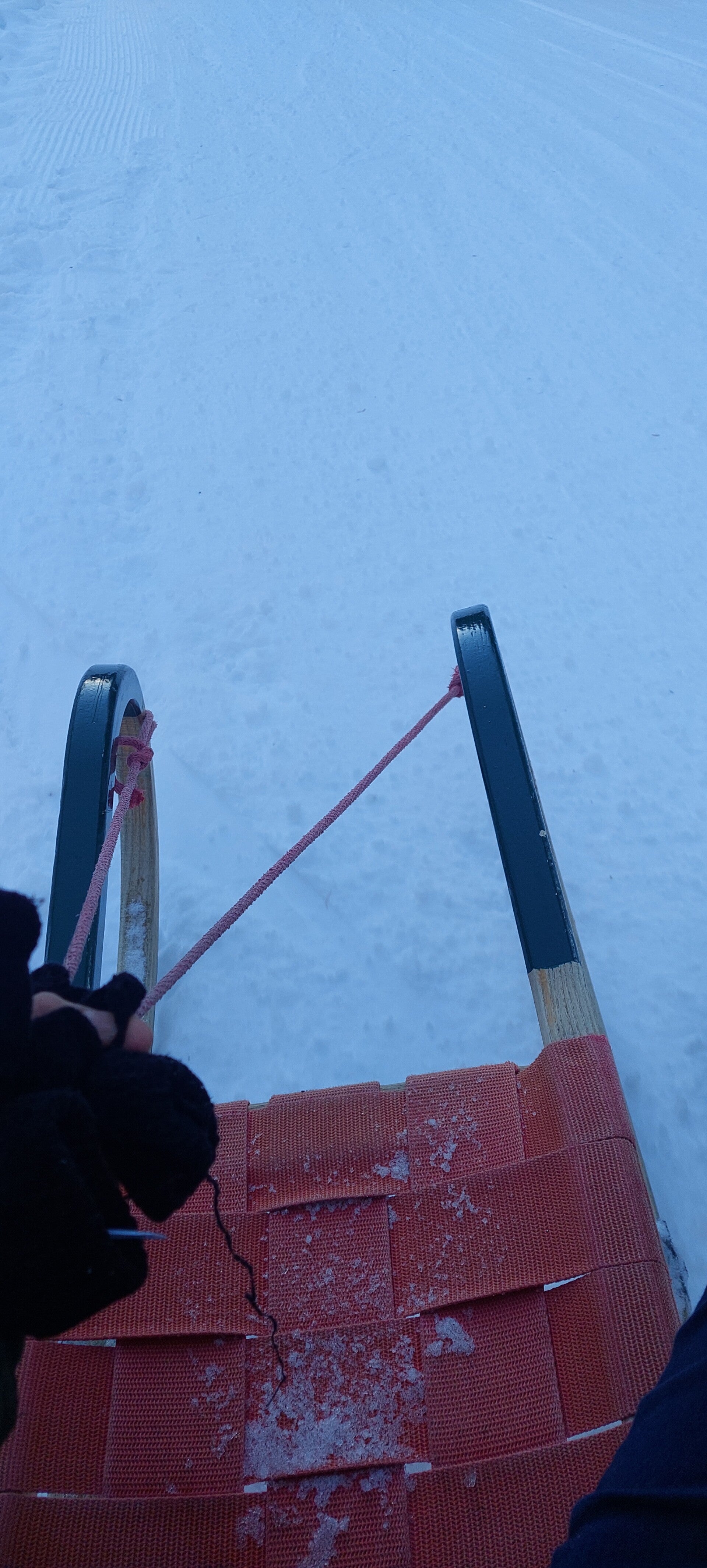Vanmorgen vroeg namen we de bus naar Payerbach en gingen we vandaar met de trein naar Semmering. Na een half uurtje lopen kwamen we aan bij de Hirschenkogel-gondelbaan. Het was even spannend of hij echt open zou zijn, want online stond dat de baan alleen in het weekend open was. Maar ja… als je er eenmaal bent, kan het altijd anders uitpakken. Toen we onderweg de gondels in werking zagen, was ik in ieder geval dolenthousiast. Bij de ingang vroegen we meteen wat de huur van ski’s kostte, maar met een extra skipas en verplichte daghuur had dat weinig nut. Mijn vader zou alleen met de gondel naar boven en beneden gaan, dus besloten we dat ik ging rodelen. Voor een man van 82 was skiën toch net iets te enthousiast.